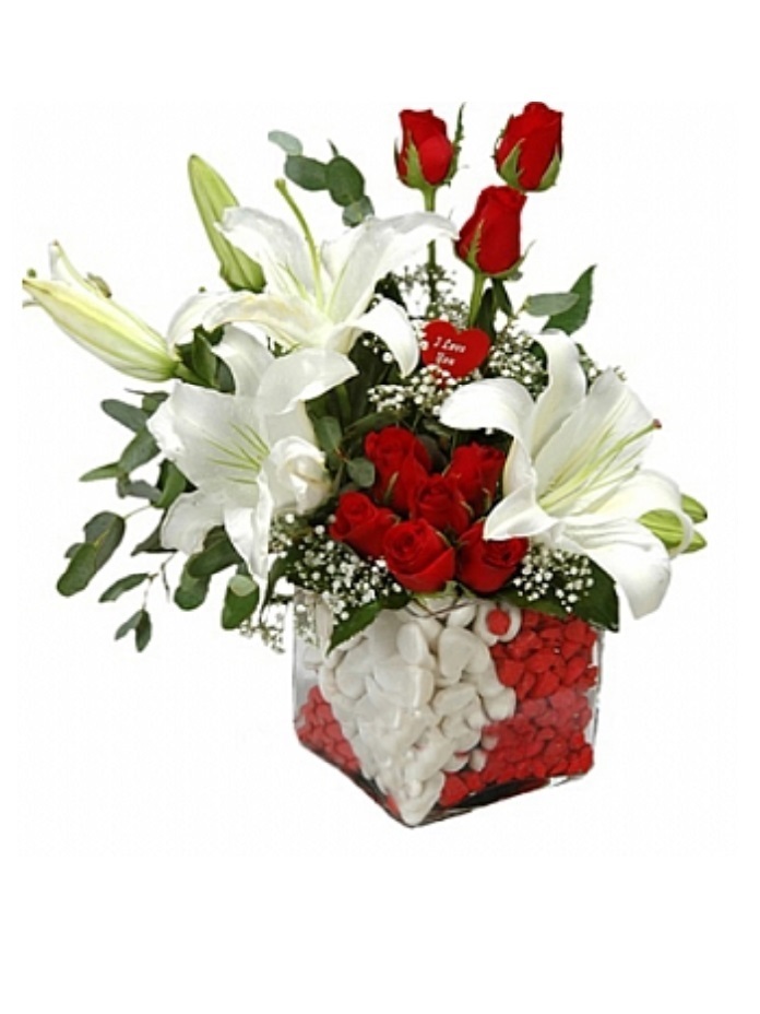 Vazoda 12 Beyaz Gül Lilyum Aranjman